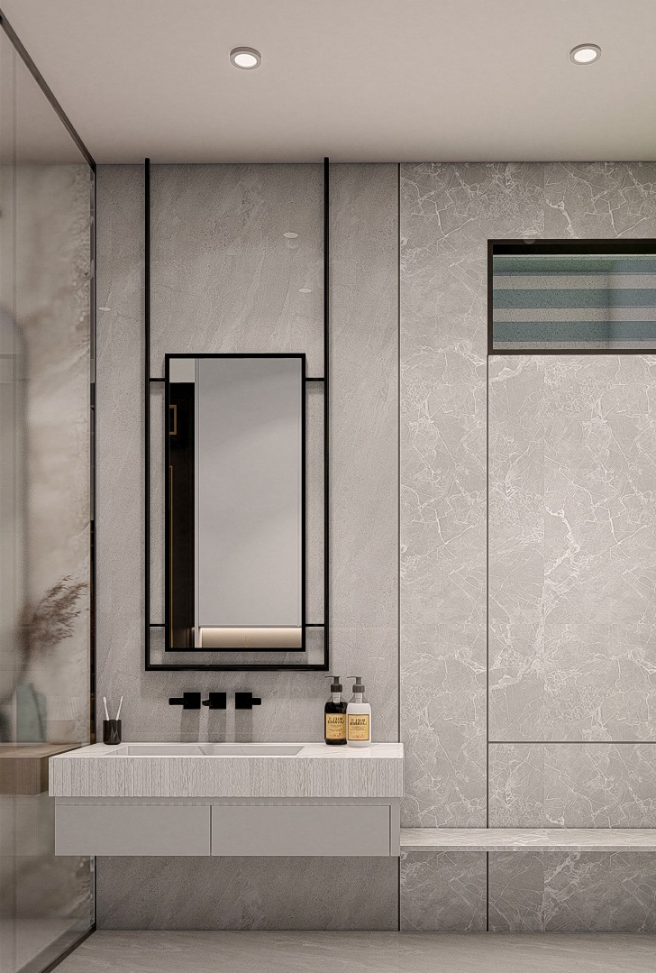 Thoughtfully planned across three levels, the layout of White Manor creates a seamless balance between open, shared volumes and private domains. Landscaped gardens wrap the home on three sides at the ground level, enhancing ventilation and views. Double-height spaces establish vertical connections, while bedrooms and terraces offer intimacy and retreat.